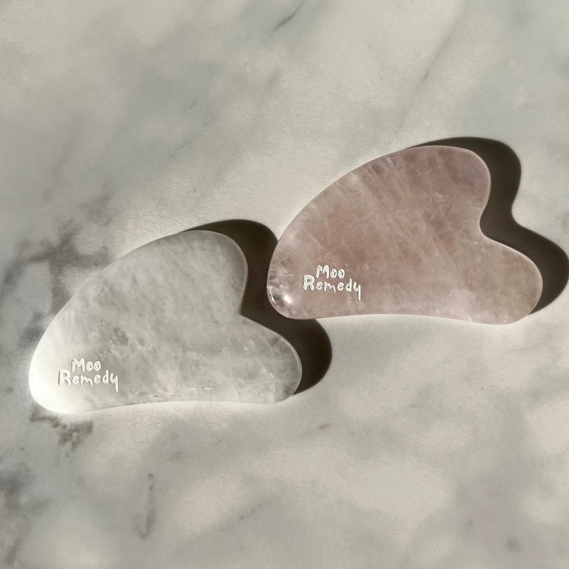 Elevate your skincare routine with our exquisite Rose Quartz and White Jade Gua Sha tools, meticulously crafted to rejuvenate and revitalize your skin. Made from rose quartz and white jade, each stroke with our Gua Sha promotes lymphatic drainage, reduces puffiness, and enhances the absorption of skincare products. Ideal for all skin types. Apply with your favourite Moo Remedy Tallow Moisturiser for the ultimate facial massage.