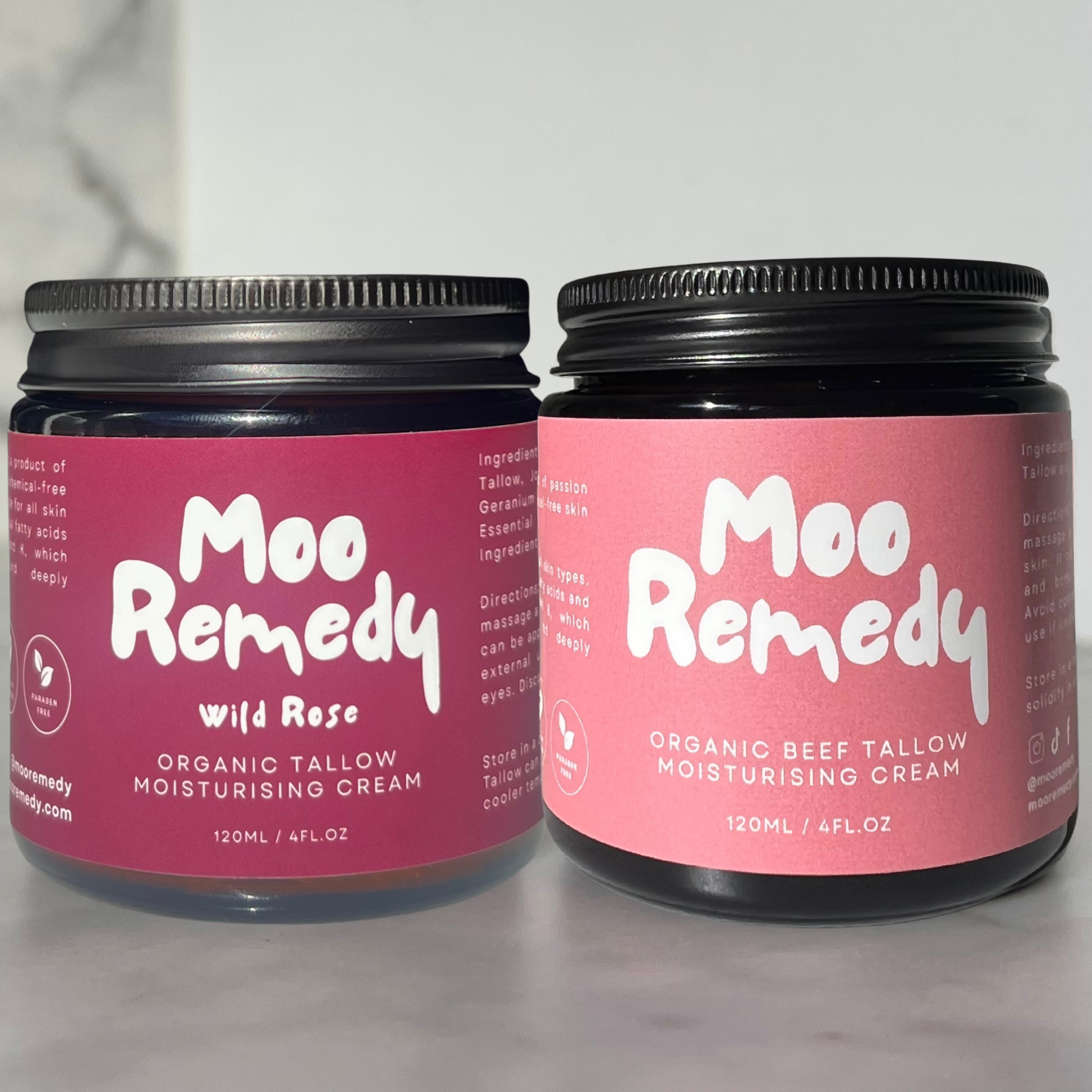 Indulge your skin with our limited edition Wild Rose Tallow Cream and our beloved Signature Tallow Cream a duo designed to nourish, moisturise, and elevate your skincare ritual. The Wild Rose cream enchants with a dreamy blend of rose geranium and ylang ylang essential oils, paired with the rejuvenating power of rosehip oil, all nestled in a base of nutrient-rich, grass-fed tallow. In contrast, our Signature Cream offers pure, unscented simplicity perfect for sensitive skin or those who prefer a minimalist approach. Together, they deliver deep, lasting moisture and timeless skin-loving benefits for face and body.